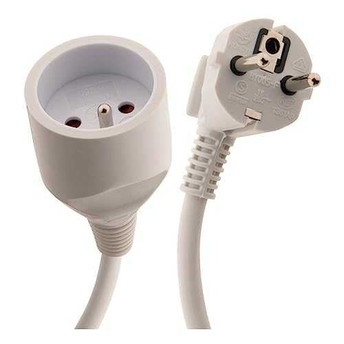 Prolunga Elettrica - Lunghezza: 1,9 m - Spina 2P + T 16 A - interno - cablata in HO5VV-F 3 x 1 mm² - colori: bianco - Norma NF.