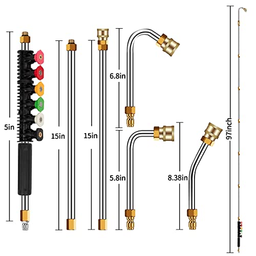 Il pacchetto include: 6* bacchette dritte (ogni 15 pollici/38 cm) + 3 * asta curva + 10 * rondelle O-ring + 6 * punte ugello.