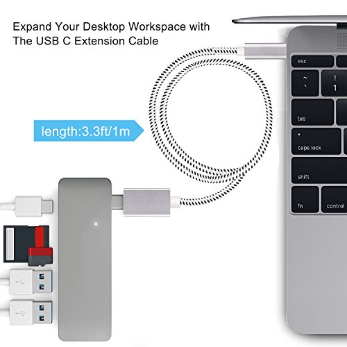 Cavo di prolunga USB C Intrecciato a USB 3.1 Tipo C Maschio a Femmina [5Gbps / 60W] Supporto 3ft / 1m 4K 60Hz Video, Audio, Sincronizzazione dati, PD 20V / 3A Ricarica per MacBook Pro, Google Chromebook, Galaxy S9 Plus