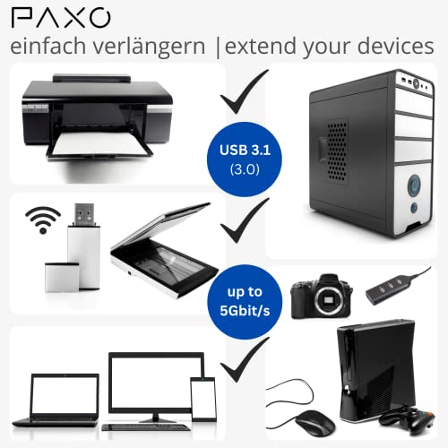 PAXO Prolunga 2m Nylon USB USB 3.1 (USB 3.0) bianco, cavo di prolunga A-A, spina in alluminio, rivestimento in tessuto