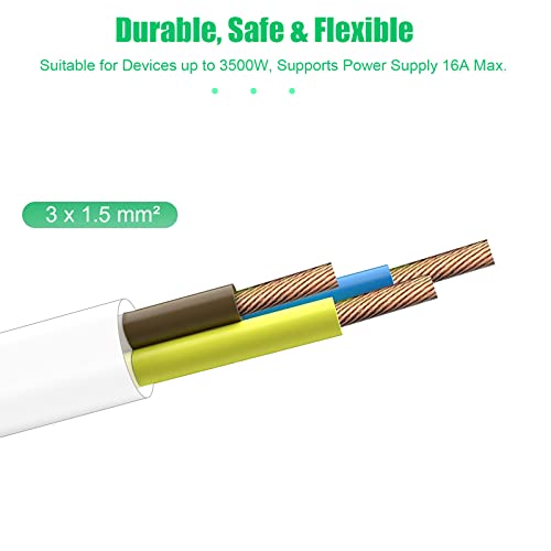 Prolunga con 3 prese AC Schuko, adattatore presa 3 in 1 (250V/16A) con cavo flessibile, doppia prolunga tripla spina, per cucina, casa, ufficio, 3 x 1,5mm², bianco
