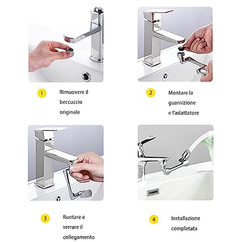 Prolunga Rubinetto Cucina 1080 Gradi BIGFOX Universal Aeratore Rubinetto Rotante con 2 Modalità Accessori Bagno per Lavello Bagno Cucina Rubinetto