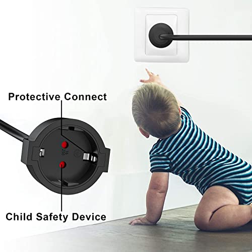 ALTA SICUREZZA: il cavo di alimentazione è molto sicuro grazie alla spina con contatto di protezione. Il cavo di collegamento è testato secondo VDE, certificato con protezione IP44. Di conseguenza, il tubo è protetto da corpi estranei e spruzzi d'acqua. Importante: anche il dispositivo collegato deve avere un connettore IPX4 per garantire la massima efficacia.