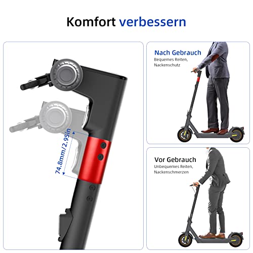 【Robusto come l'originale】 - L'altezza di questa prolunga per il collo del monopattino è appositamente progettata per trovare la posizione più adatta a te. L'installazione non distruttiva lo rende innocuo per la struttura originale del tuo scooter e aumenta la sicurezza di guida.