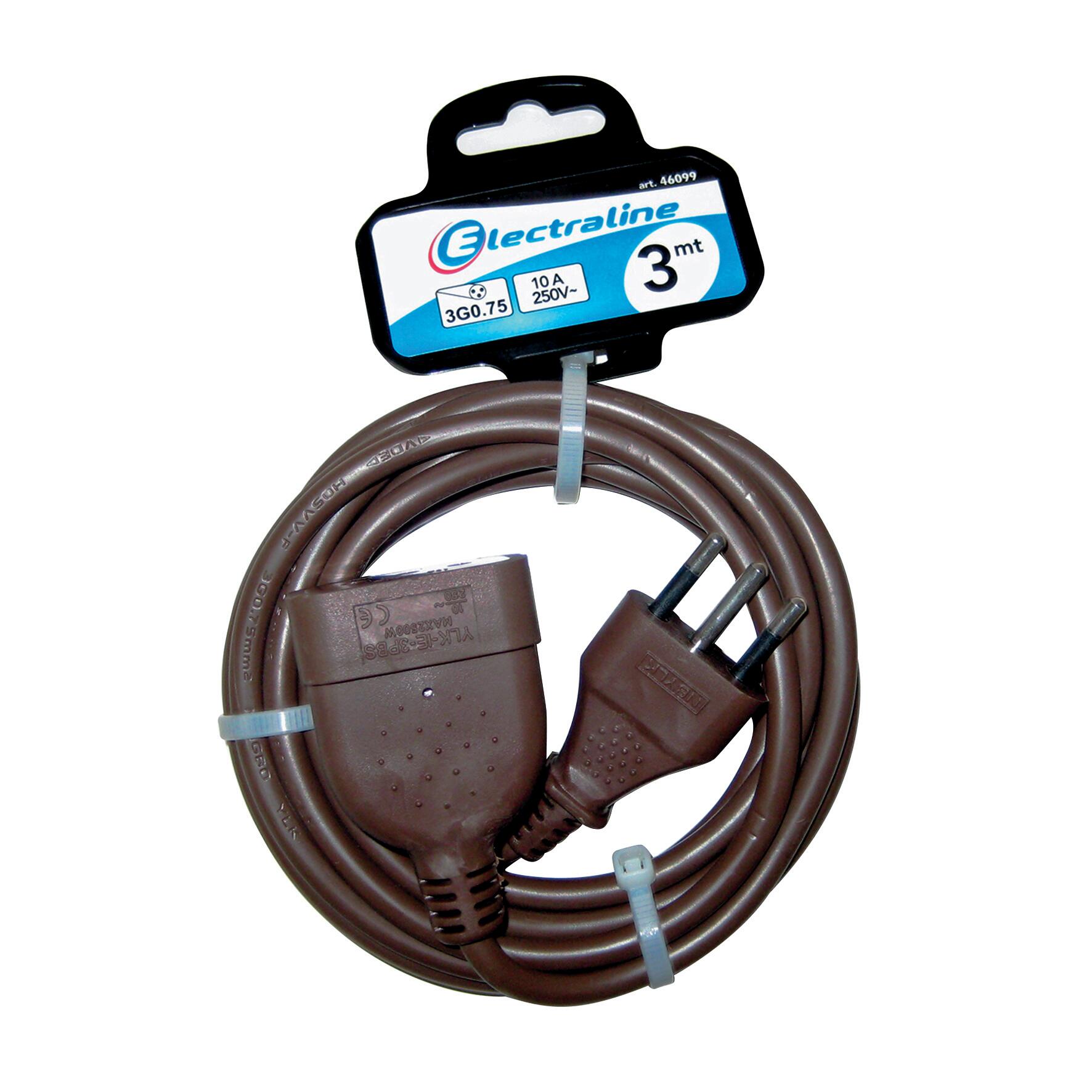 Prolunga 3 m 3x0,75 spina 10 A, presa 10 a marrone;