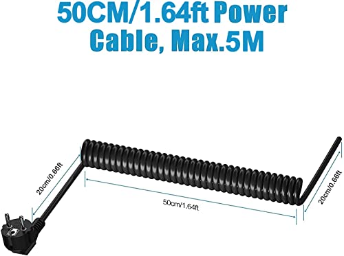 Professionale: cavo a spirale da 5 m con rivestimento esterno in PVC da 6,8 mm per elevate sollecitazioni meccaniche. Forte resistenza alla corrosione, buon isolamento elettrico, ignifugo fino a 120 gradi Celsius, elevata durezza, resistenza al taglio, resistenza alla pressione, resistenza all'umidità. Intervallo di temperatura consigliato: da -20 °C a +100 °C.