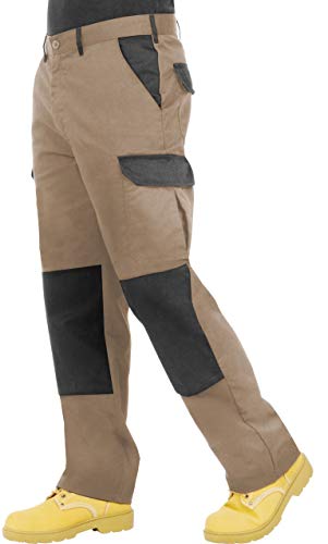ProLuxe Pantaloni da Lavoro da Uomo, Resistenti, Modello Cargo, con Tasche Imbottite sulle Ginocchia e Cuciture rinforzate, (Khaki/Nero 30S)