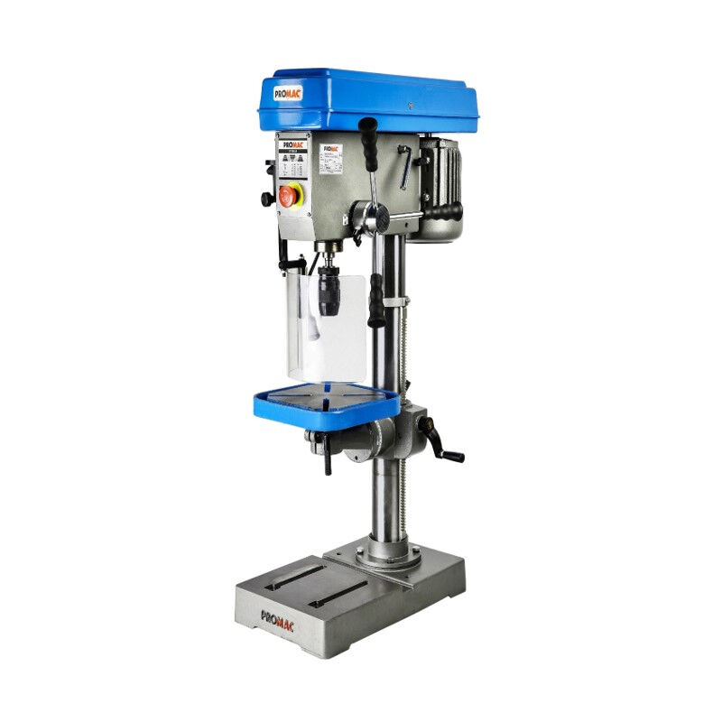 Dettagli: Protezione del servo mandrino Fornito con mandrino autoserrante da 16 mm Cambio di velocità tramite cinghia Illuminazione a LED dell'area di foratura per il modello svizzero Nessuna illuminazione per il modello francese Tavolo inclinabile 45°D / 45°G Specifiche tecniche: Dati tecnici Tensione del motore 400 volt Potenza motore 0,75 kW Attacco Morse MK2 Capacità acciaio Ø 16 mm Corsa del mandrino 80 mm Numero di velocità 12 Gamma di velocità 290-2300 min-¹ Carico della tavola 40 kg Larghezza scanalatura a T 12 mm Peso 74 kg