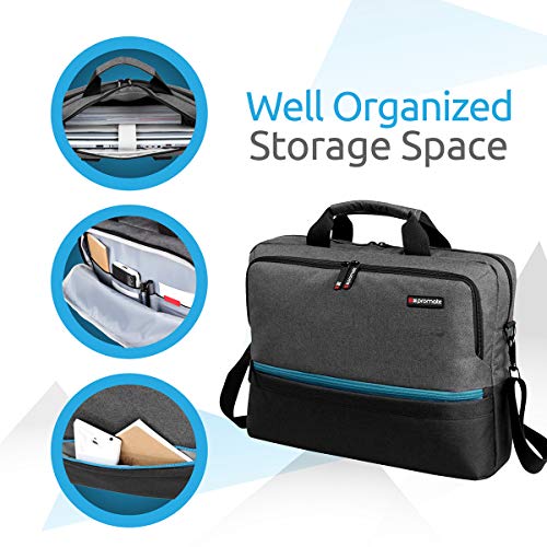 Promate Ascend-MB - Borsa a tracolla per computer portatile da 15", Chromebook, Ultrabook fino a 15,6", colore: Grigio