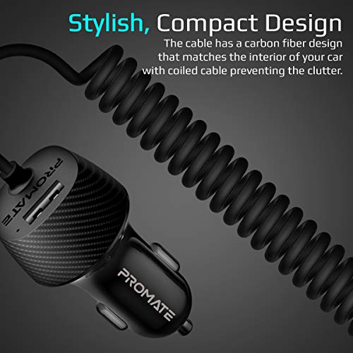 Promate Caricabatteria da Auto Universale a connessione Multipla 3.4A con Porta USB