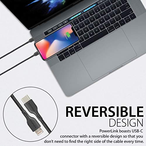 Promate MFi Certified Lightning to USB-C Cable, Fast Charging Syncing Cord with 3A Power Output and Anti-Tangle 1.2m Cable for iPhone, iPad Pro, iPod, MacBook Pro, PowerLink, Black