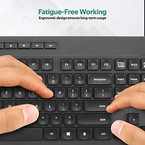 [Produttività wireless Ottimizzata] proCombo-11, una combinazione di mouse e tastiera wireless creata per tutte le vostre esigenze, che offre precisione, praticità e affidabilità. La tastiera full-size presenta una comoda disposizione con illuminazione retroilluminata e il mouse ergonomico con sensore ottico offre un design che si adatta perfettamente alla mano.