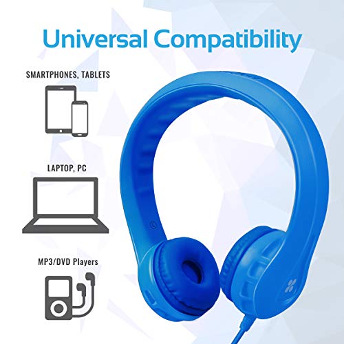 Promate Flexure, cuffie per bambini con limitatore di volume, suono stereo, cuscinetti auricolari morbidi, cancellazione del rumore passivo