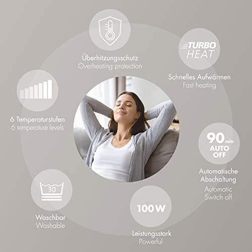 [Facile da usare] Allevia la tensione del collo, delle spalle e della parte superiore della schiena. Il nostro cuscino riscaldante riscalda fino alla zona del collo e offre una maneggevolezza particolarmente facile con interruttore ergonomico. Materiale: 100% poliestere, dimensioni: circa 52 x 56 cm, 100 Watt di potenza.