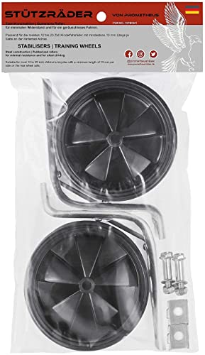 Prometheus - Rotelle di sostegno per bicicletta per bambini, universali, per 12 14 16 18 pollici, in nero, robusta struttura in acciaio con pneumatici in gomma, edizione 2021