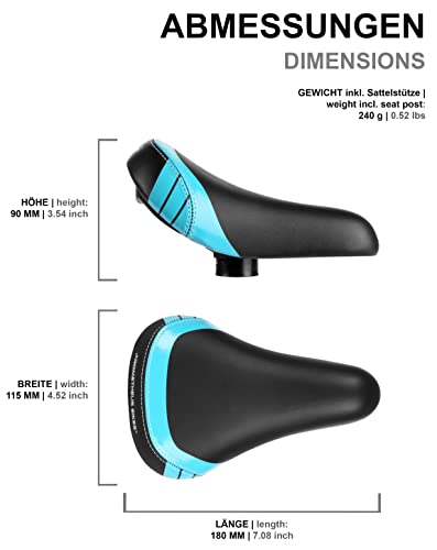Design Made in Germany: la nostra sella con reggisella in alluminio da 25,4 mm (Ø) è adatta per tutte le comuni biciclette da corsa per bambini e bambini nelle misure da 10 a 14 pollici con un tubo di seduta dal diametro di 28,6 mm (Ø).