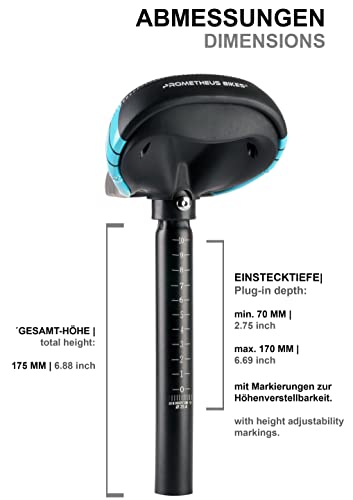 Prometheus - Sella per bici da corsa per bambini, 10-12", con asta di supporto per sella, in alluminio, 25,4 mm, edizione 2023 (blu)