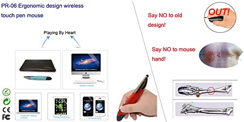 Promi Mouse-penna ottica wireless, Pro 2.4GHz USB, regolabile, 800/1200/1600 DPI, smart-mouse per scrivere, adatto per Windows 7/8/10/Vista/XP/2000, Android, Linux, Mac OS rosso rosso