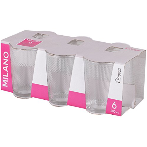 Promobo - Set di 6 bicchieri da acqua con linee in rilievo Essaim Milano Luxe, 20 cl