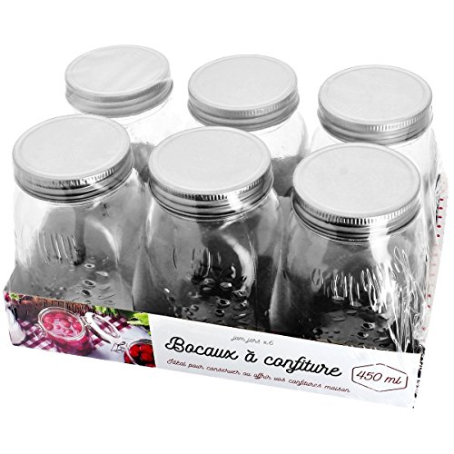 Promobo Lotto di 6 vasetti per la conservazione di prodotti in vetro, elemento di arredamento, frutta, scolpito, iscrizione, articolo per conservare alimenti golosi, capienza: 450 ml
