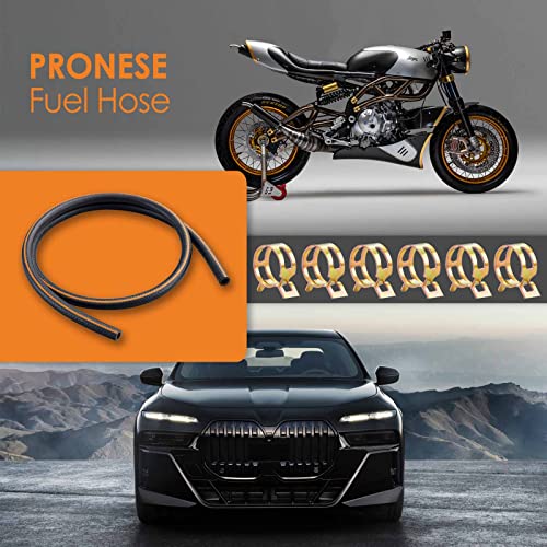 Pronese Tubo carburante 8 mm, lunghezza 1 m, tubo flessibile in gomma nitrilica (NBR), resistente all'olio, resistente alla pressione, 6 pezzi di fascette stringitubo incluse, per automobili e moto