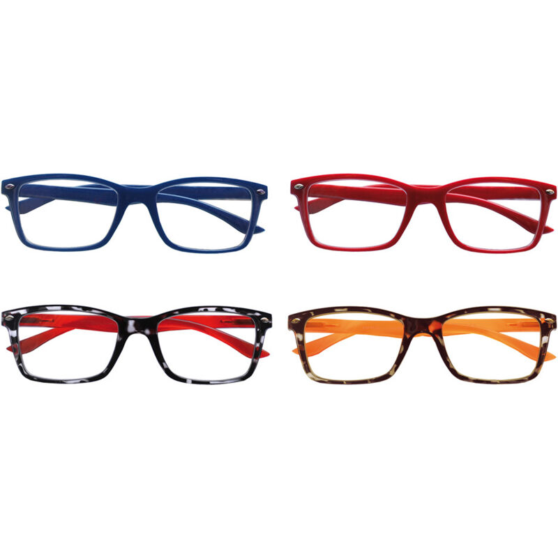 Dispositivi medici certificati a marchio CE conformi alla norma EN 9001:2008, con autorizzazione Ministero della Salute. Testati da 'Certottica'. Adatti per presbiopia, sono realizzati in leggero materiale organico iniettato con rivestimento effetto gomma, aste flessibili con meccanismo a molla. Lenti sferiche infrangibili e sottili. In blister. + 1,5 tartaruga/rosso