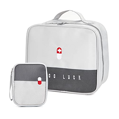 Kit di Pronto Soccorso Borsa per Medicinali Borsa di Primo Soccorso Forniture di Base Ideali per le Emergenze Kit Medico Vuota per Casa Ufficio Viaggio Campeggio 2 Pezzi (Grigio)