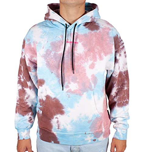 PROPAGANDA Felpa Ribs Tie Dye Uomo Celeste con Cappuccio e Stampa sul Retro con Maxi Logo XL