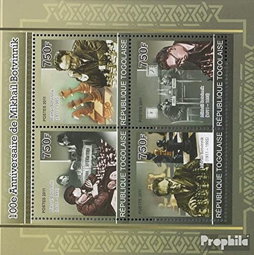 Prophila Collection Togo 3914-3917 Minifoglio (Completa Edizione) 2011 Mikhail Botvinnik (Francobolli per i Collezionisti) Scacchi