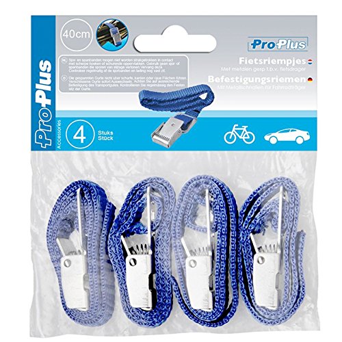 ProPlus - Cinghie di fissaggio per portabiciclette blu, set da 4 pezzi, 40 cm, fibbie in metallo