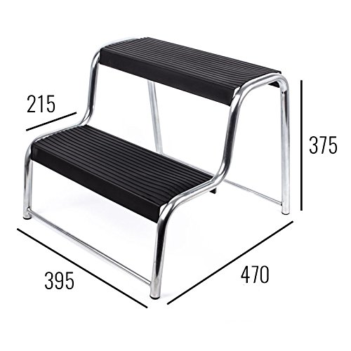 Dati tecnici: numero di gradini: 2, portata fino a: 150 kg, dimensioni: 48 x 44 x 37 cm, materiale: acciaio, plastica, peso: circa 4,2 kg. Colore: argento, nero.