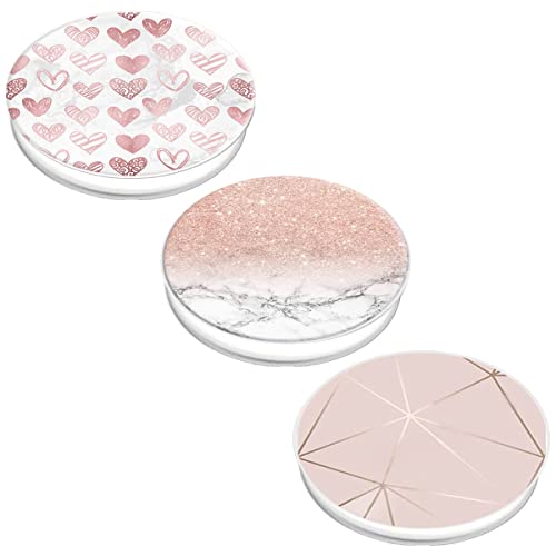 PROPOP - Supporto telefonico per Smartphone e Tablet, Confezione da 3, Cuore Oro Rosa marmo geometrico