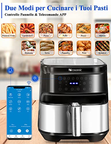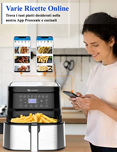Proscenic T21 Friggitrice ad Aria, 5.5L Air Fryer Controllo con App & Alexa e Display LED Toccabile, Funzioni Timer/Preriscaldamento/Programmi/Senza BPA e PFOA per Patatine Fritte/Ali di Pollo/Pizza