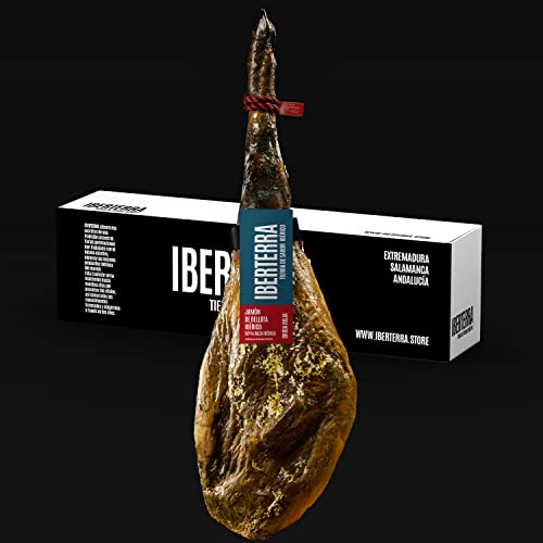 PROSCIUTTO: Un pezzo esclusivo ottenuto dalle zampe posteriori di maiali iberici con una purezza del 50% e 75%. Alimentato esclusivamente con ghiande e pascoli di dehesa, sottoposto all'azione del sale e successivamente ad un processo di essiccazione e maturazione in cantina che conferisce al prodotto particolari caratteristiche in termini di sapore, profumo e consistenza. Prosciutti iberici di ghianda. Jamon. Prosciutto Iberico IBERTERRA.