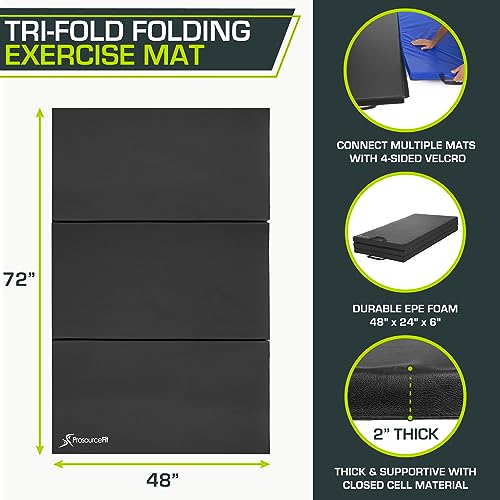 ProSourceFit - Tappetino pieghevole per esercizi con manici per il trasporto, 1,8 m di lunghezza x 10,2 m di larghezza x 3,8 cm di spessore, colore: Nero