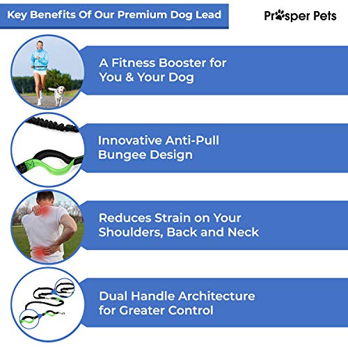 Prosper Pets mani libere guinzaglio - Maniglia a doppia corsa piombo - ammortizzante, estensibile Bungee - Cintura in vita regolabile - per corsa, jogging o camminate