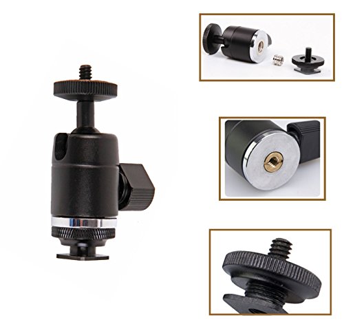 Prost - Testa con mini sfera, staffa per flash con slitta e supporto adattatore per base fotocamera da 0,6 cm supporto adattatore a videocamera LED fotocamera DSLR, vite/dado per monopiede/treppiedi 0,6 cm e 9,5 mm