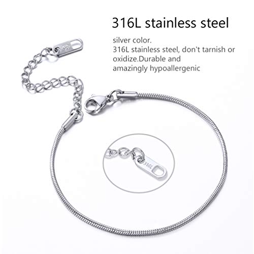 PROSTEEL Bracciale Donna Uomo Braccialetto Semplice a Catena Osso Serpente Sottile Lunghezza Regolabile 15 20 cm, Acciaio Inox, Argento, Larghezza 1,5 mm (con Confezione)