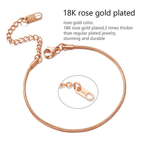 PROSTEEL Bracciale Donna Uomo Braccialetto Semplice a Catena Osso Serpente Sottile Lunghezza Regolabile 15 20 cm, Acciaio Inox, Oro Rosa, Larghezza 1,5 mm (con Confezione)