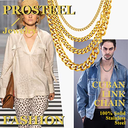 PROSTEEL Collana Uomo a Catena Barbazzale Cubana Grande Robusta, Larghezza 6 mm, Lunghezza 60 cm, Acciaio IONX Placcato Oro 18K, Hip Hop Punk Rap, Oro, Regalo Perfetto (con Confezione)