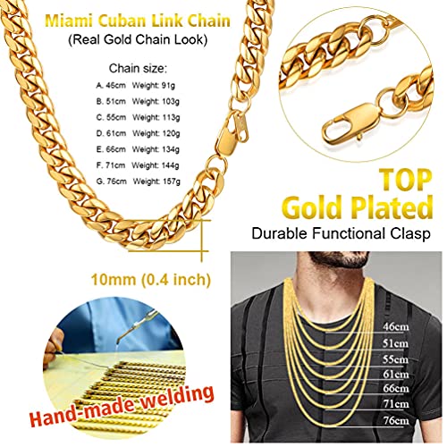PROSTEEL Collana Uomo a Catena Barbazzale Cubana Larga Grossa Robusta, Larghezza 10 mm, Lunghezza 55 cm, Acciaio Inossidabile Placcato Oro 18K, Hip Hop Punk Rap, Oro, Regalo Perfetto (con Confezione)