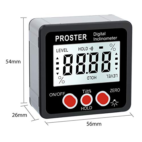 Proster Angle Finder Livello Digitale Base Magnetica LCD Goniometro Inclinometro con Retroilluminazione Misuratore Angolo Zero Setting + Cacciavite Batteria per Carpenteria Industria Manutenzione Auto