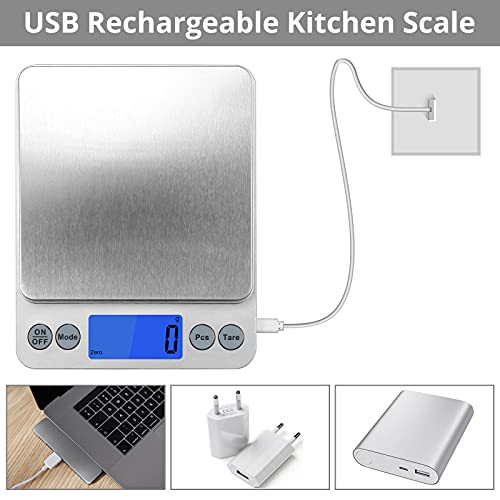 Proster Bilancia da Cucina Ricaricabile 3g-10kg Bilancia Cucina Digitale LCD Display Bilancino di Precisione con Funzione Tare Multifunzione Pesa Cibo Alimenti Frutta per Casa e Cucina