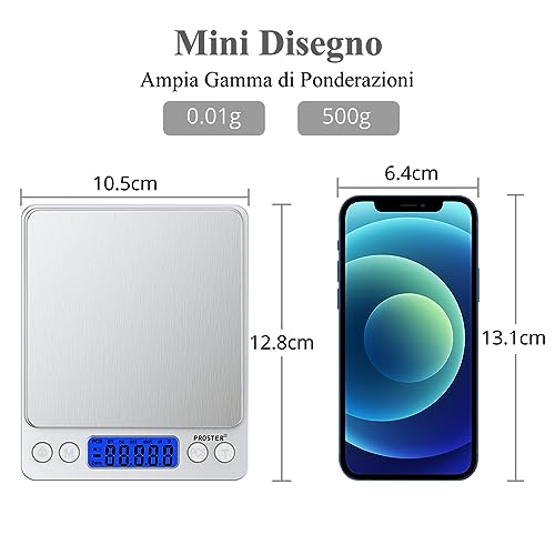 Proster Mini Bilancia Digitale Tascabile 0,01-500g: Mini Misura e Leggero, Facile per Trasporto;