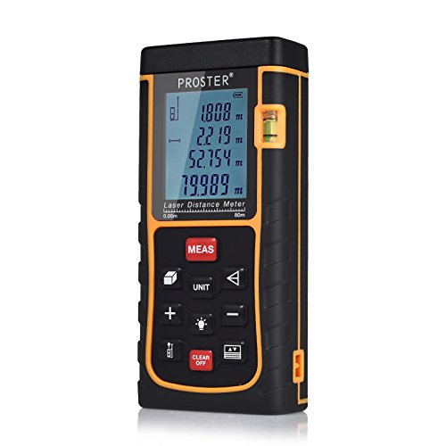 Proster Distanziometro Laser Digitale Telemetro Range Finder Misuratore Distanza con Livella a Bolla e LCD Retroilluminato - Fino a 80M / 0.16 a 262ft