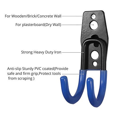Ganci Avvolgiti in Gomma Antiscivolo: Doppio Gancio Garage Avvolto in Gomma Antiscivolo di Colore Blu Trattiene Saldamente le Merci e Protegge la Superficie di Oggetti dai Graffi.