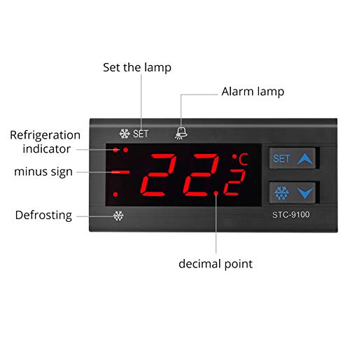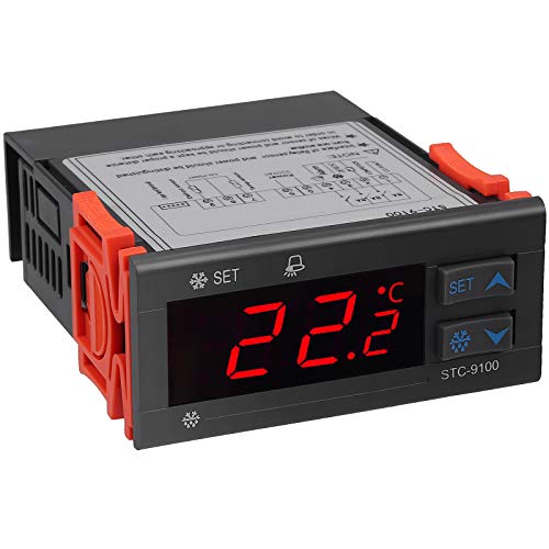 Proster Regolatore di Temperatura 220V Termostato STC-9100 Riscaldamento Raffreddamento Scongelamento con Display LCD Doppio Sensore Controllatore Temperatura per Acquario Congelatore Refrigeratore