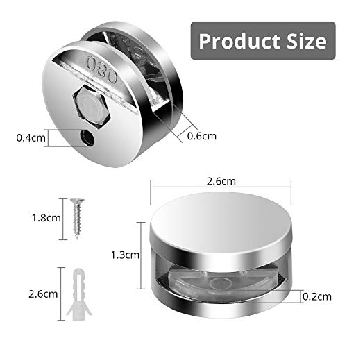 Proster 8pz Supporto per Vetro Specchi 3-5mm Morsetti per Specchi da Bagno Regolabile Clip per Specchi in Lega di Zinco Resistente Morsetti Vetro con Viti-Rotondo