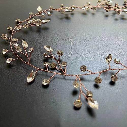Prosy Bride Wedding Hair Vines Bridal Crystal Headband Strass Headpieces Accessori per capelli per le donne e le ragazze (Oro rosa)