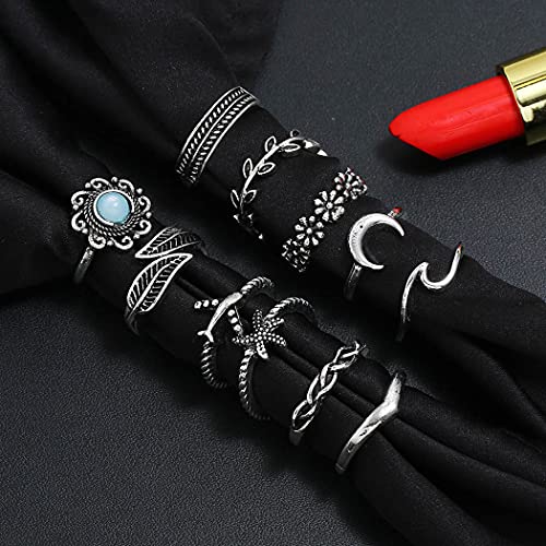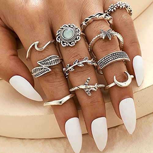Prosy Boho Crystal/Flower/Crescent/Wave/Star Knuckle Rings Set Anello impilabile con giunture per dita in argento per donne e ragazze (Stile A)